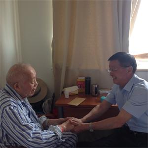 8月25--26日两天,老干部办公室的两位同志在院党委书记吴爱中、副书记、纪委书记杨春花的带领下看望慰问了我院6位抗战时期的离休老干部。吴书记亲自看望了我院抗战时期参加革命的原副院长宋养序(享副部级医疗待遇)、原组织处处长徐敬(享局级);杨副书记看望了我院抗战时期参加革命的享局级干部吴清云、享局级干部顾金德、参局级干部魏殿山;老干部处处长看望慰问了抗战时期参加革命的局级干部方明的家属。