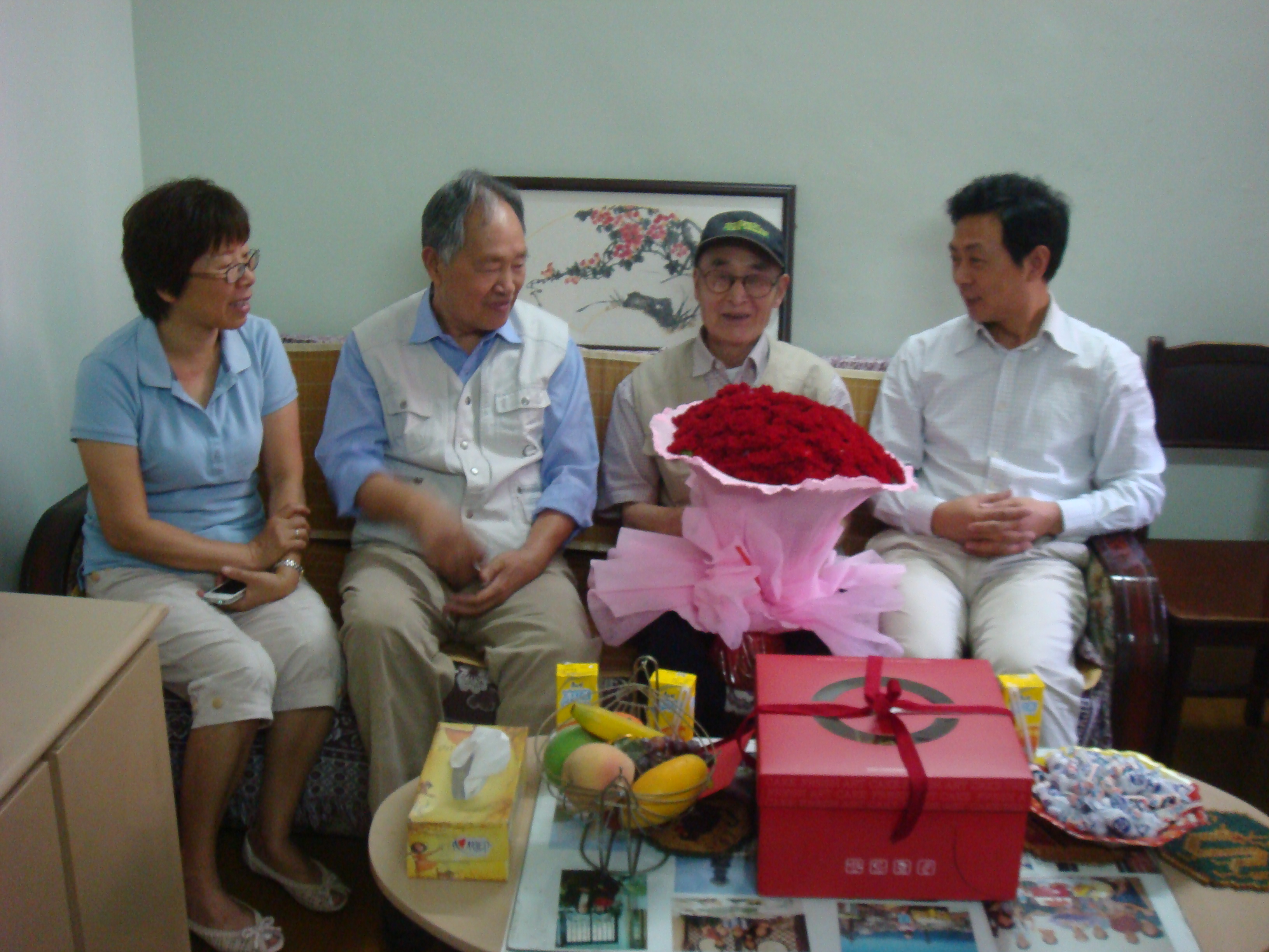 为老同志祝寿 来源: 作者: 发布时间:2012-10-31 00:00:00 浏览次数: 次 【字体:小 大】 9月17日是离休干部余鸣同志八十五周岁生日,离休支部委员、畜牧所领导、院老干部办公室的同志,带着鲜花、蛋糕、慰问金和离休支部委员郭德照同志画的祝寿图,上门为老同志祝寿,祝老同志身体健康,幸福长寿。 分享到: 【打印正文】