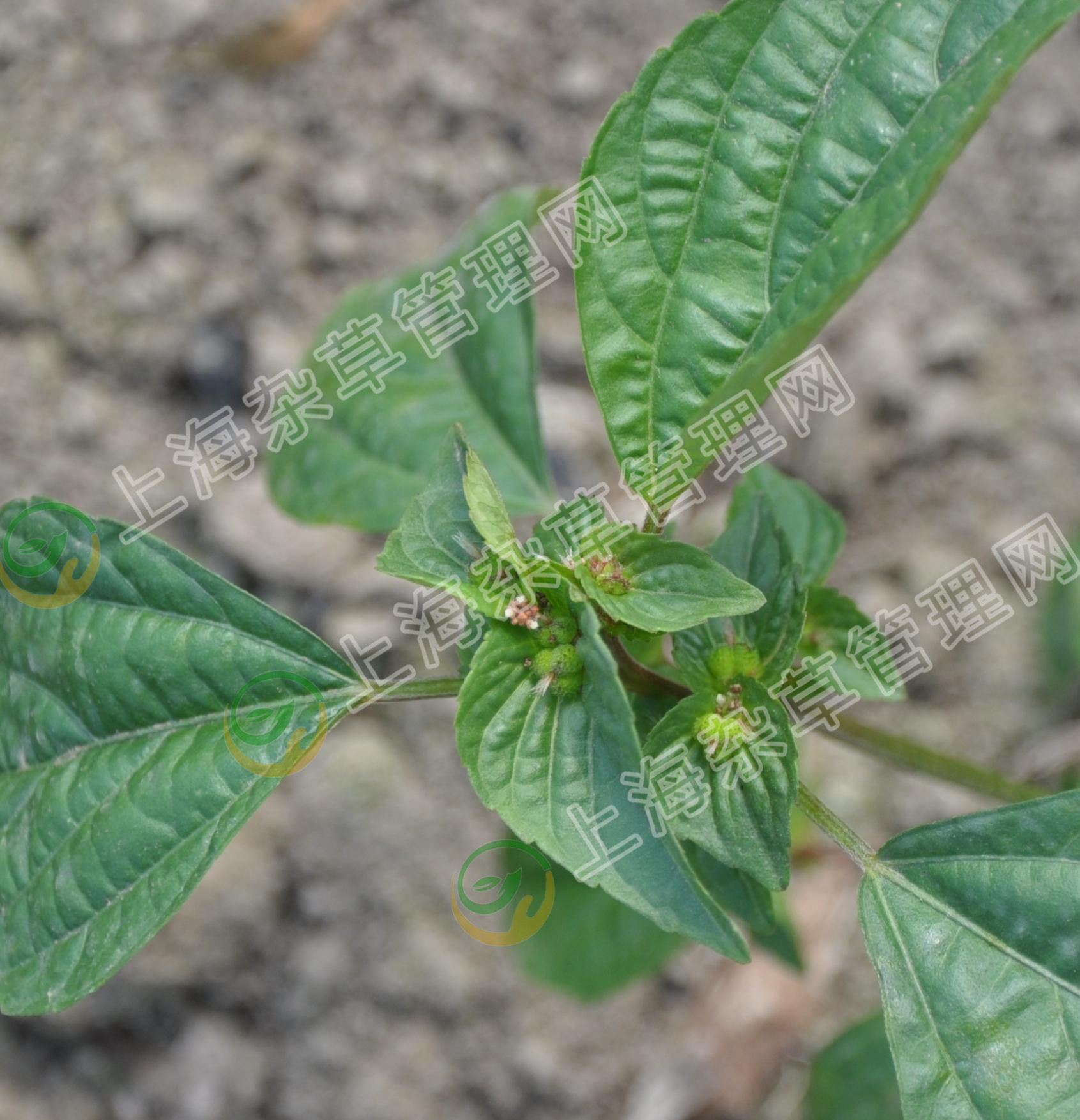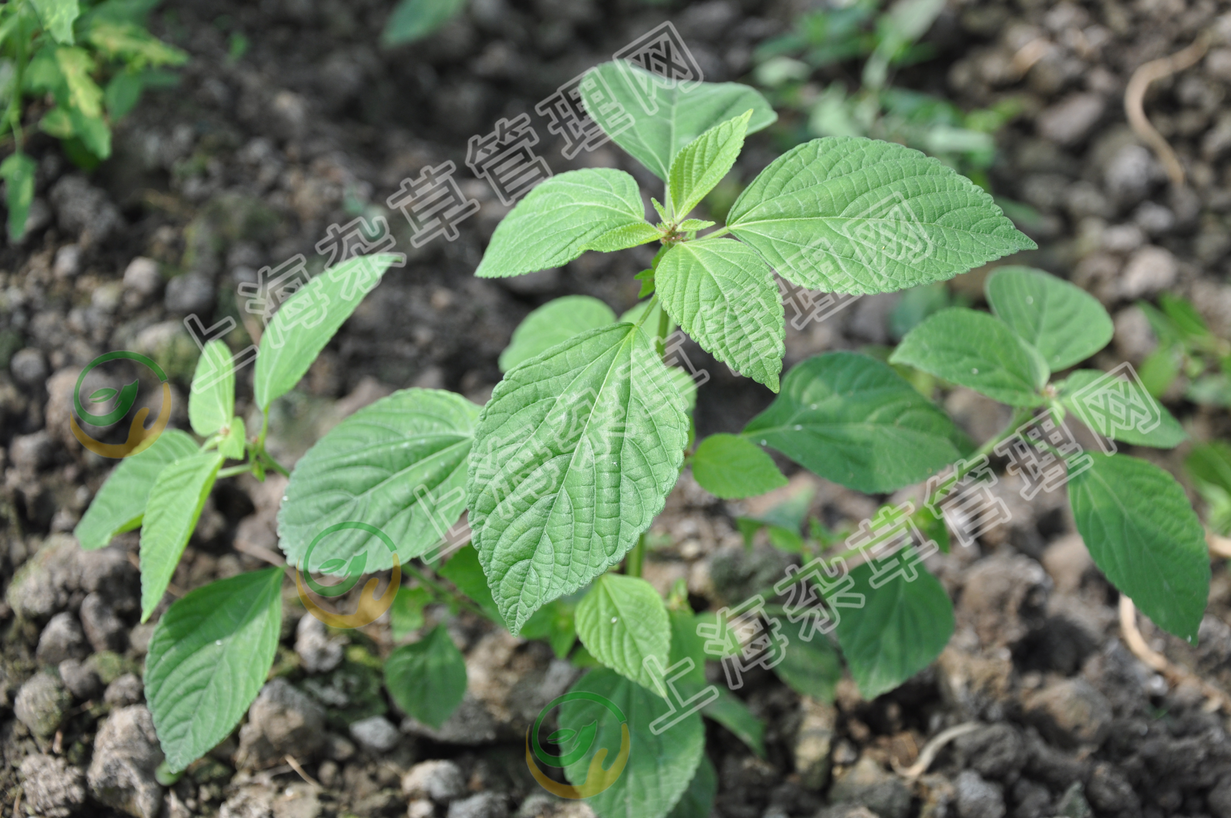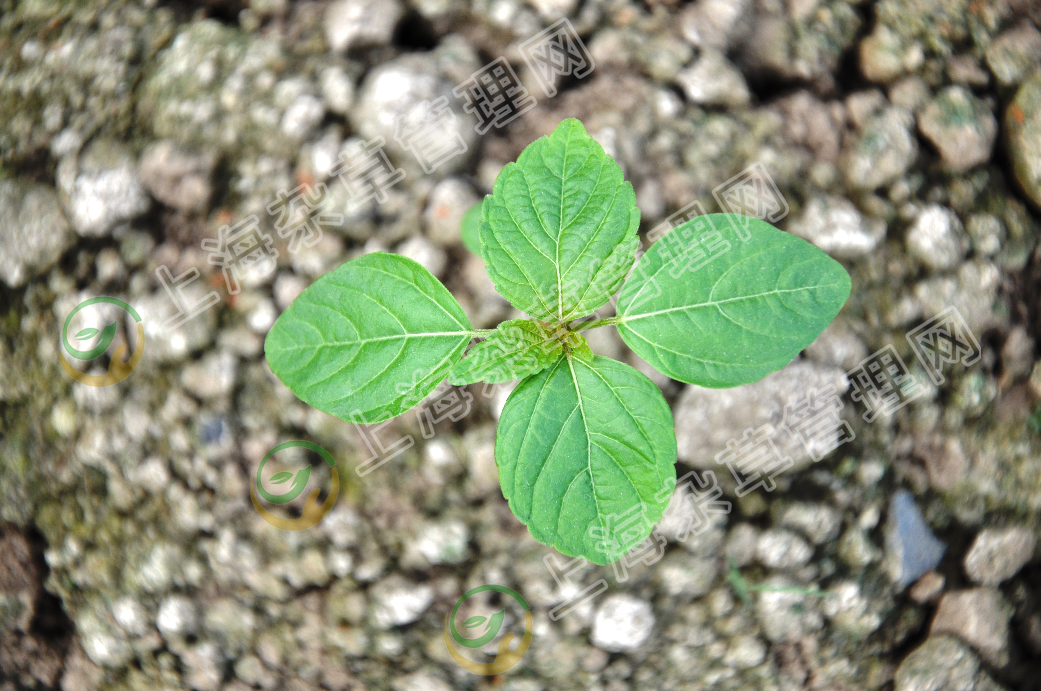 【识别特征】子叶长圆形,脉三出;上胚轴密被斜垂弯生毛,下胚轴密被斜垂直生毛;初生叶2片,对生,卵形,密生短柔毛;成株茎直立,高30-60cm,单叶互生,卵状披针形或长卵圆形,基三出脉明显,叶缘有钝齿,茎与叶上均被柔毛;穗状花序腋生,花单性,雌花位于花序下部,全花包藏于三角状卵形至肾形的苞片内,苞片靠合时形如蚌,边缘有细锯齿,雄花序位于雌花序上部,紫红色;蒴果小,钝三棱状;种子卵球形,灰褐色,表面有圆形的小穴。花期7-8月,果期8-10月。