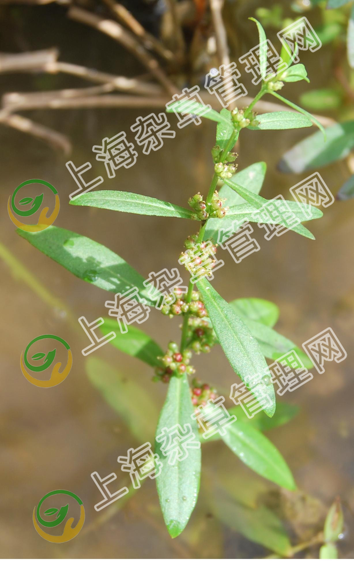 水苋菜 来源:杂草管理团队 发布时间:2024-04-26 10:48:50 浏览次数: 次 【字体:小 大】 【学名】Ammannia baccifera L.【别名】浆果水苋、细叶水苋。【生活型】夏季一年生。【识别特征】初生叶2片,对生,卵状披针形,先端渐尖,叶基阔楔形,具叶柄,全株光滑无毛;成株茎有4棱,多分枝;叶对生,线状披针形、倒披针形或狭倒卵形,叶基渐狭成短柄或无柄;聚伞花序腋生,有短梗,花密集;花萼钟状,有4齿,呈正三角形;无花瓣;雄蕊4,稍短于花萼;子房球形,花柱长约为子房长度之半,约0.4mm。蒴果球形,紫红色,直径1-1.5mm,在中部以上不规则的盖裂;种子极小,呈三角形。 分享到: 【打印正文】