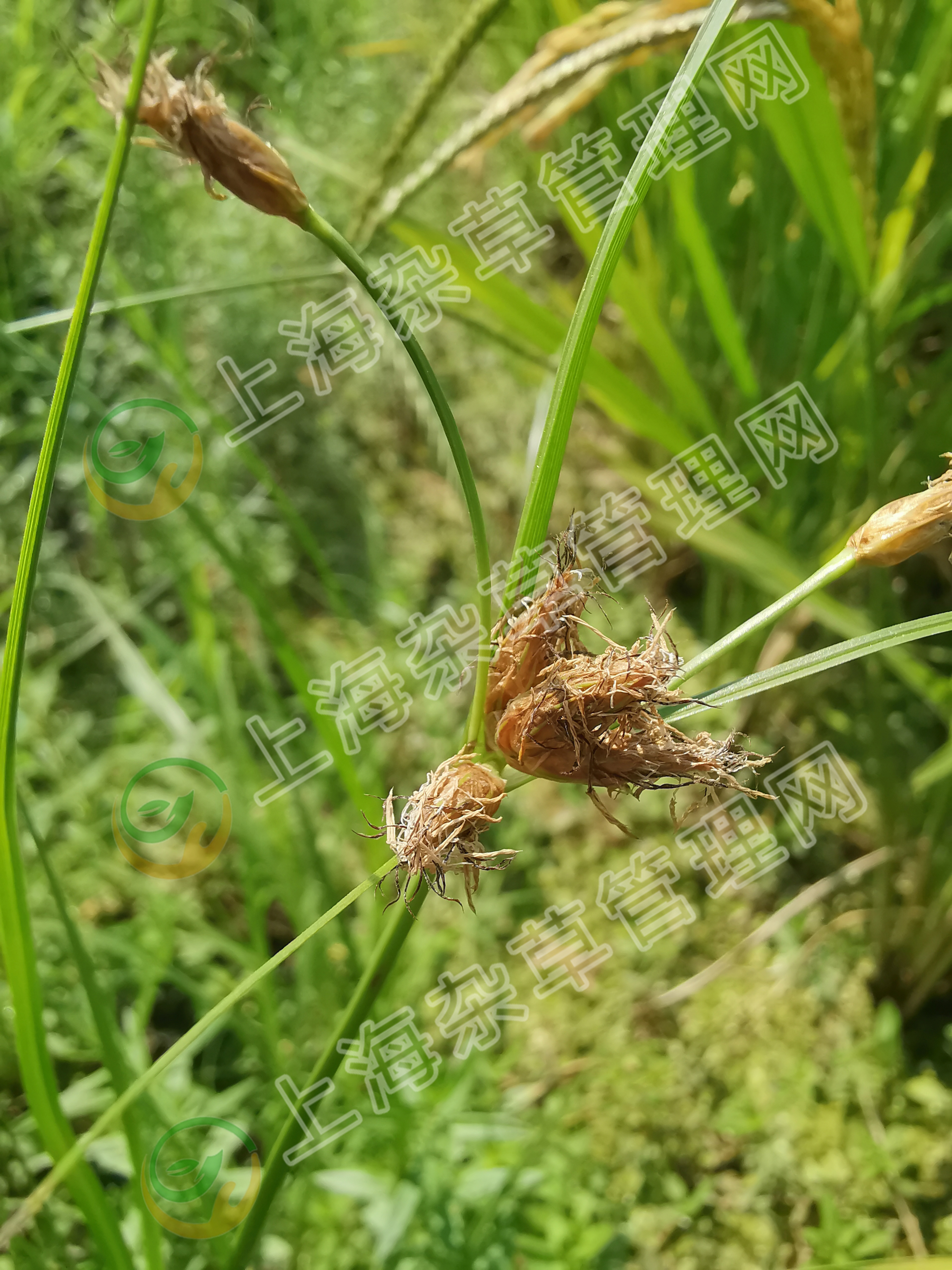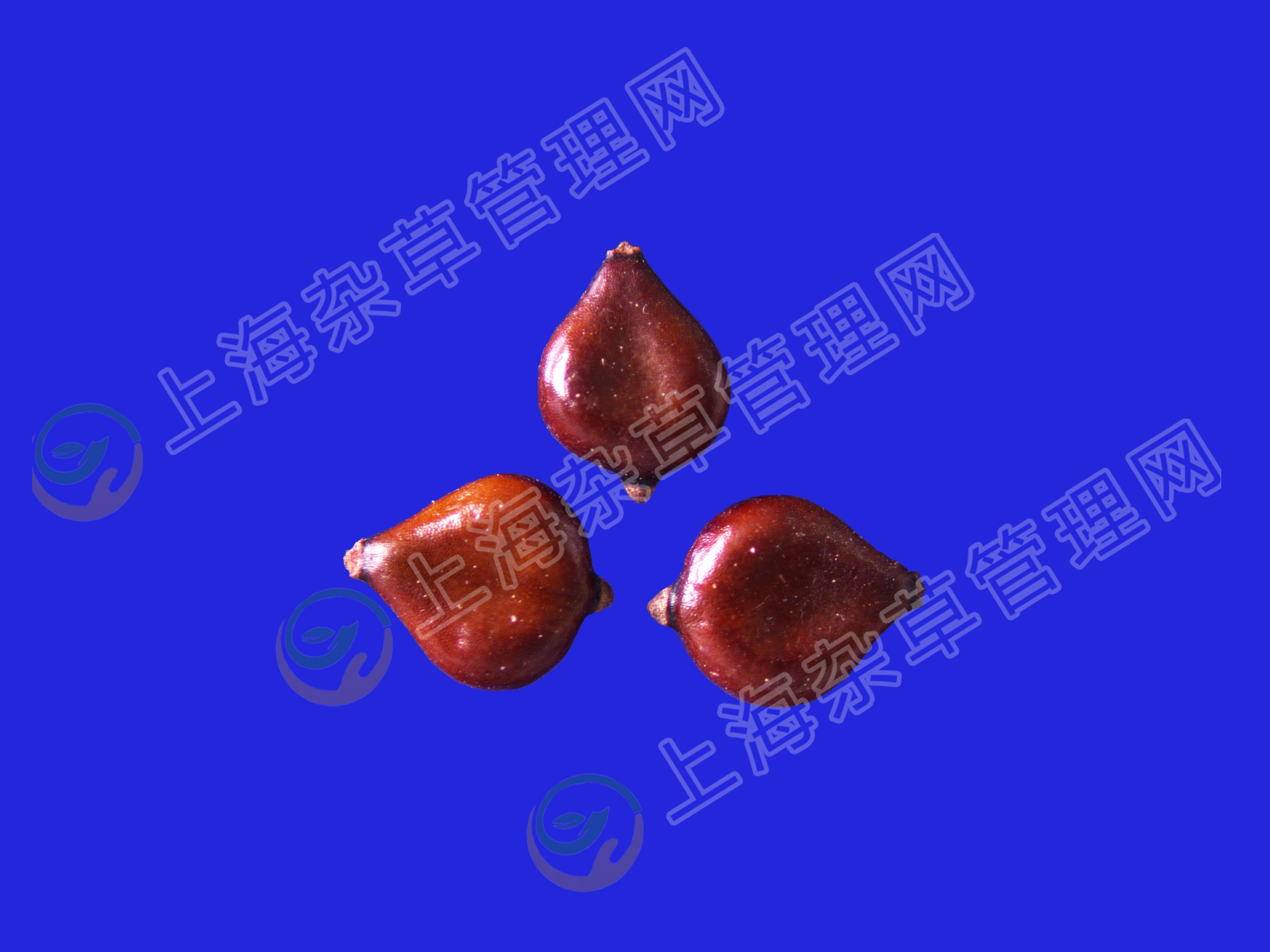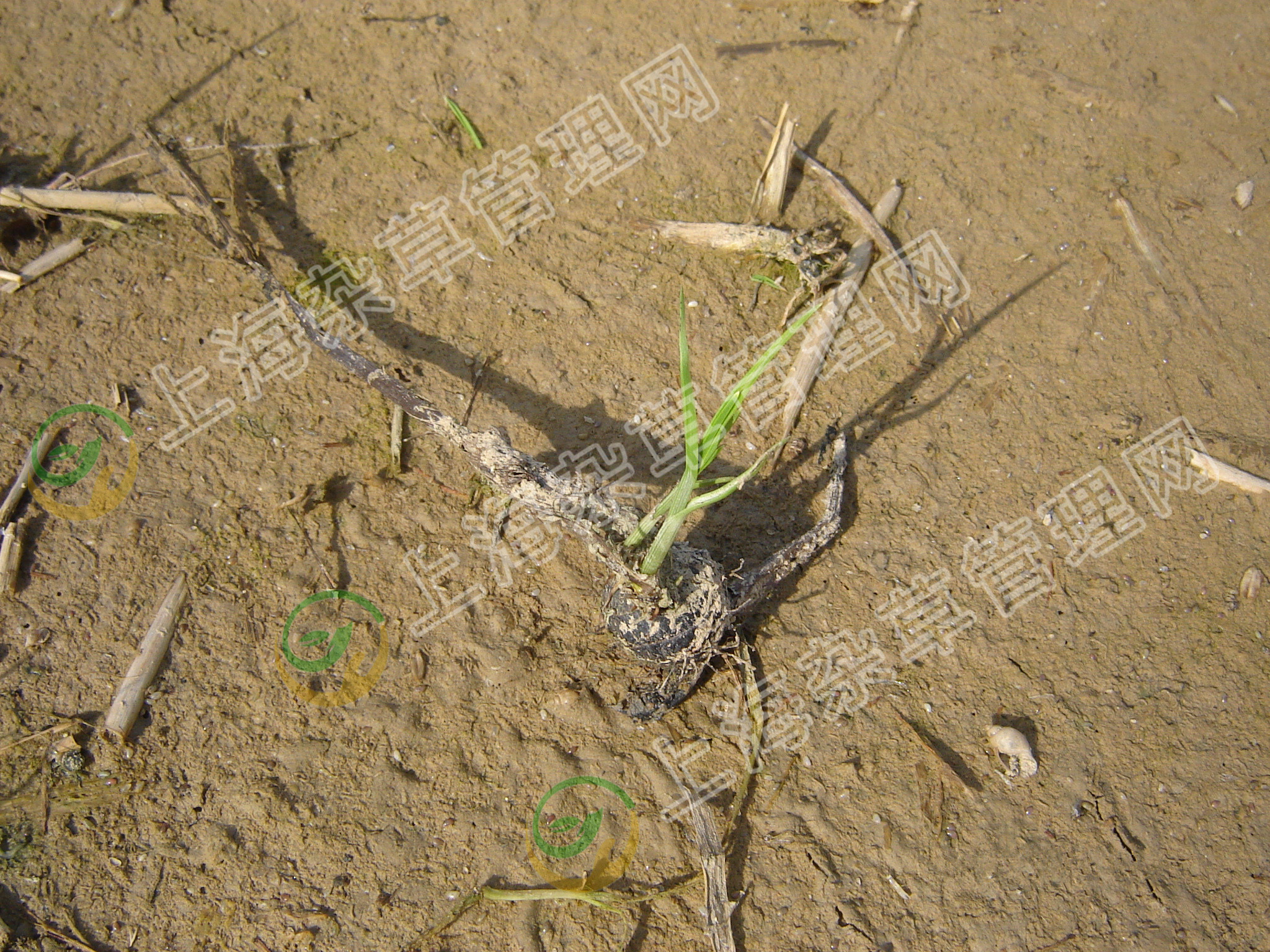 【识别特征】子叶留土,第一片真叶针状,叶鞘边缘有膜质翅,第二片真叶横剖面上可见2个大气泡,近圆形,第3片真叶横剖面呈三角形,亦有两个气腔;成株具匍匐的根状茎,顶端增粗成块茎,块茎椭圆形或球形;秆单一,扁三棱形,有多数秆生叶;叶片长线形,扁平,具长叶鞘;苞片叶状,1-3片,比花序长;长侧枝聚伞花序短缩成头状,或有时具1-2个短的辐射枝;小坚果倒卵形或广倒卵形,双凸镜状,或二侧压扁至二面微凹,或稍凸。花期5-6月,果期7-9月。