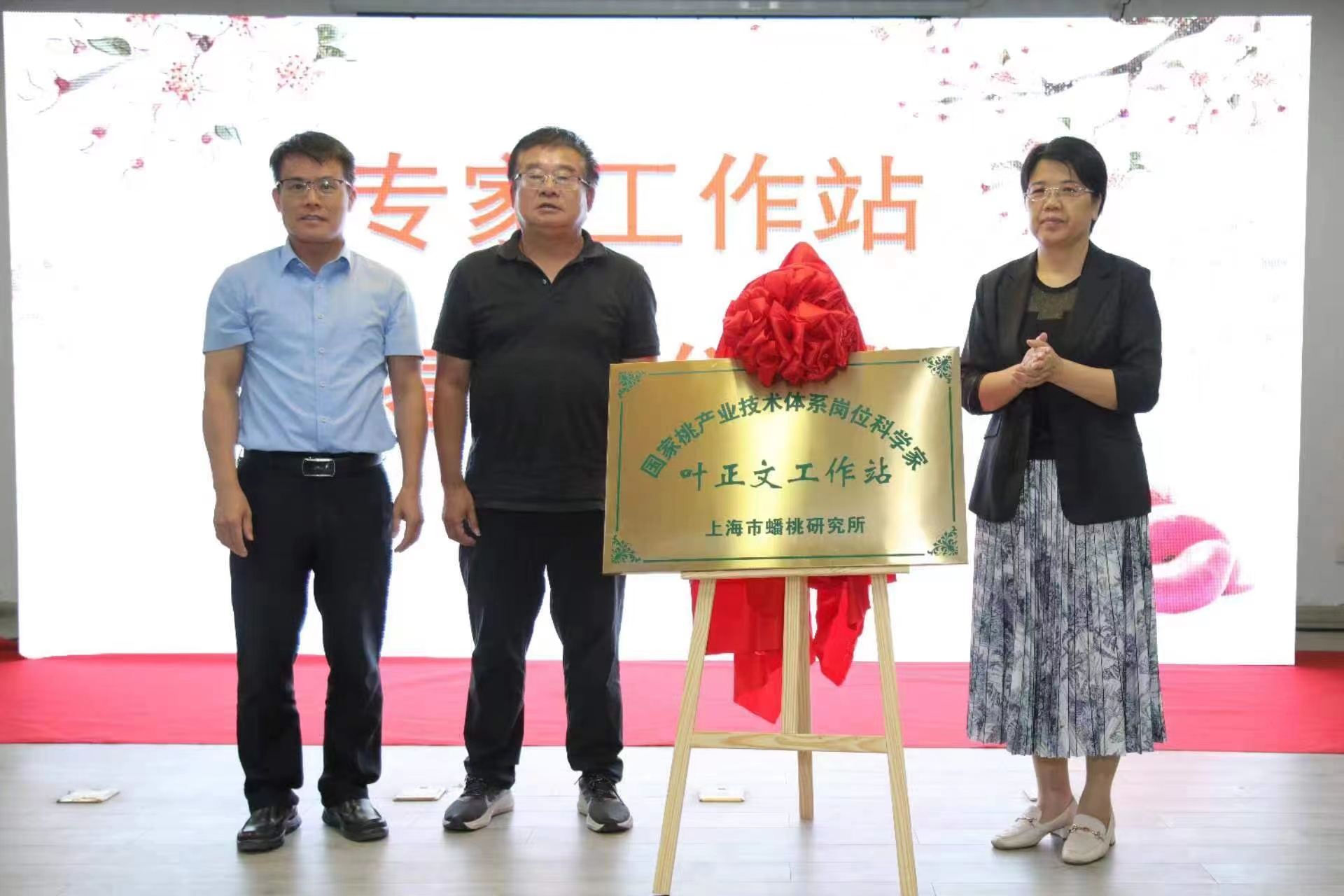 图5 金山区农业农村委员会主任叶文娣(右一)、金山区吕巷镇镇长吴池亮(左一)为“叶正文专家工作站”揭牌