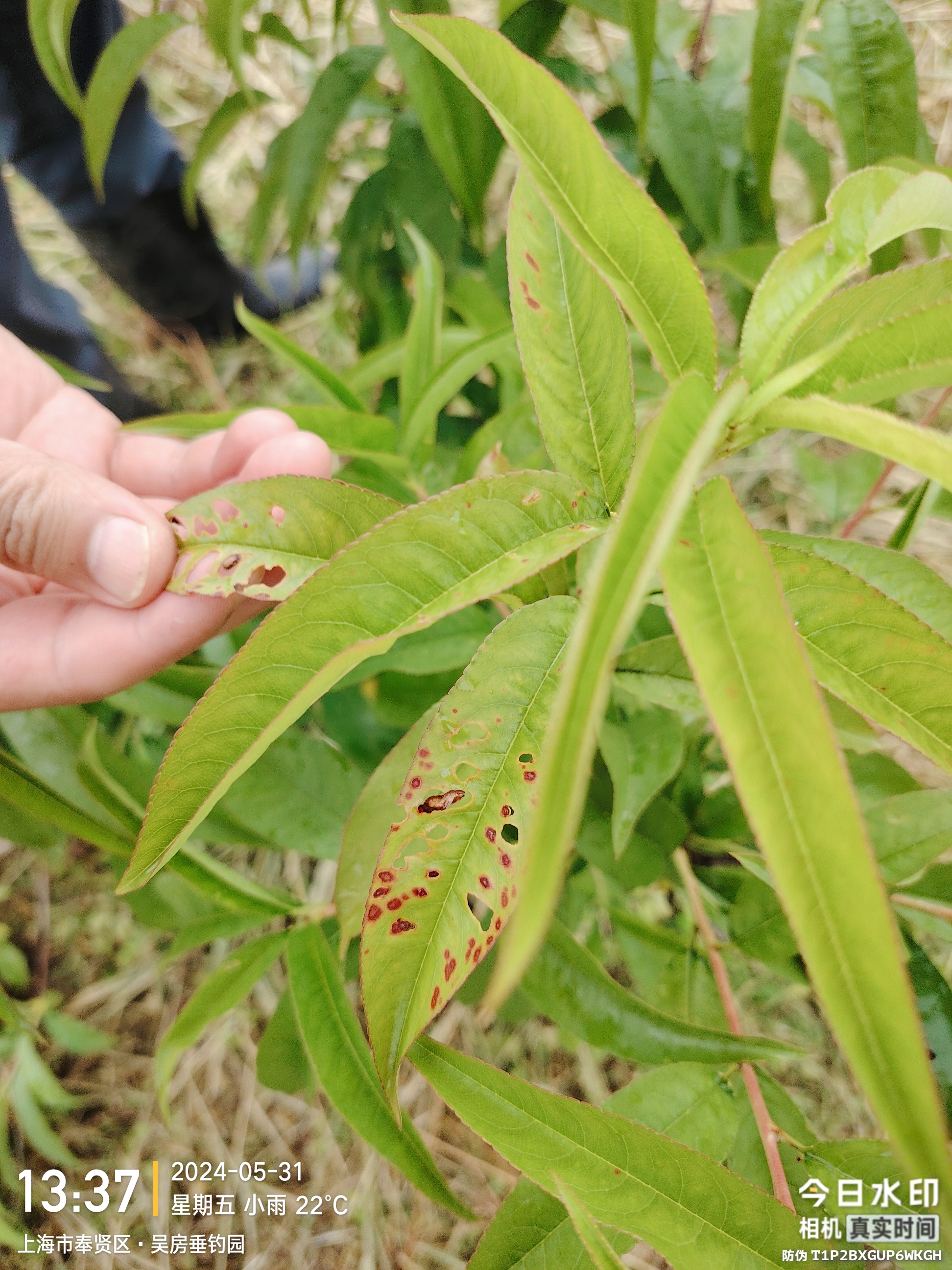为应对6月即将到来的汛期,林果所“一村万树”博士服务团在5月底再次集中开展果树种植养护入村技术服务,5月30-31日恰逢连续降雨,大部分村居的果树种植地块状态良好,树体生长也较为健旺。但也有少数村居的果树集中种植区域围沟和条沟内有明显积水,暴露出了所选地块排水不畅等问题。另还发现个别村居有因机械除草操作不当导致树苗基部受损、肥水供应不足导致树势偏弱,出现枝干流胶等问题。服务团成员都一一做了拍照记录,并现场给出了针对性的改进措施指导。