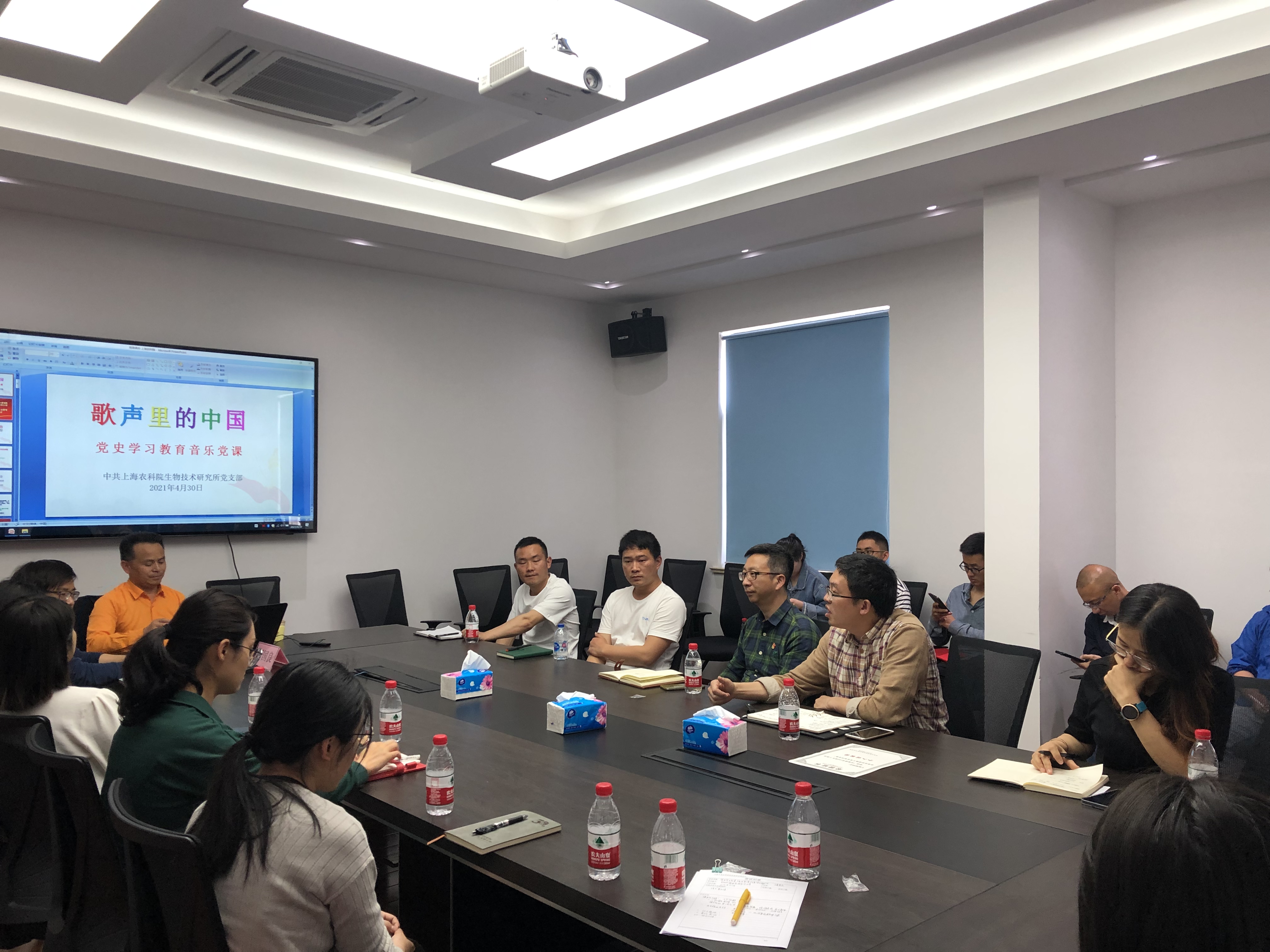 为深入开展党史学习教育,汲取前进力量,4月30日上午,生物所党支部特邀上海音乐家协会会员、上海市群众艺术馆文艺指导员周国良老师带来一堂音乐党课《歌声里的中国》。党课由所党支部书记潘爱虎同志主持。生物所党支部在职党员和入党积极分子共30人参加活动。