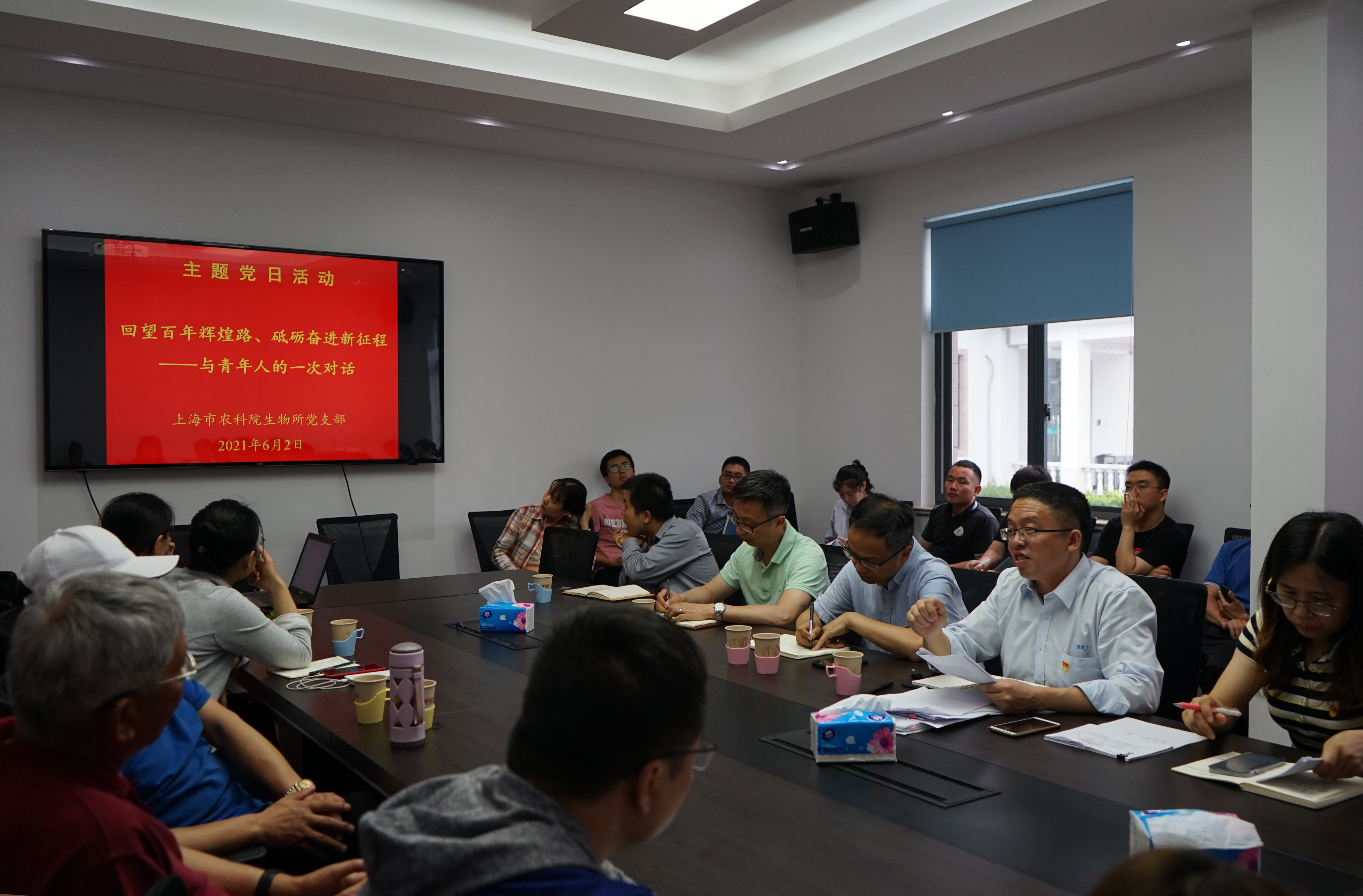 为纪念党的百年华诞,持续激发老干部、老党员的正能量,生物所党支部于6月2日下午在检测中心会议室开展“回望百年辉煌路、砥砺奋进新征程”主题党日活动。退休党员原生物所副所长朱连龙同志和韩克敏同志受邀与青年人开展了一次对话,并结合自己的成长、工作经历讲故事、谈体会。活动由生物所党支部书记潘爱虎同志主持,生物所全体党员同志参加。