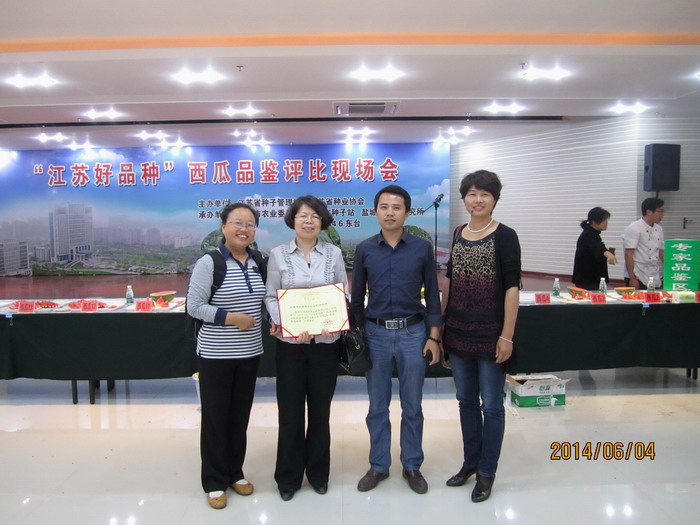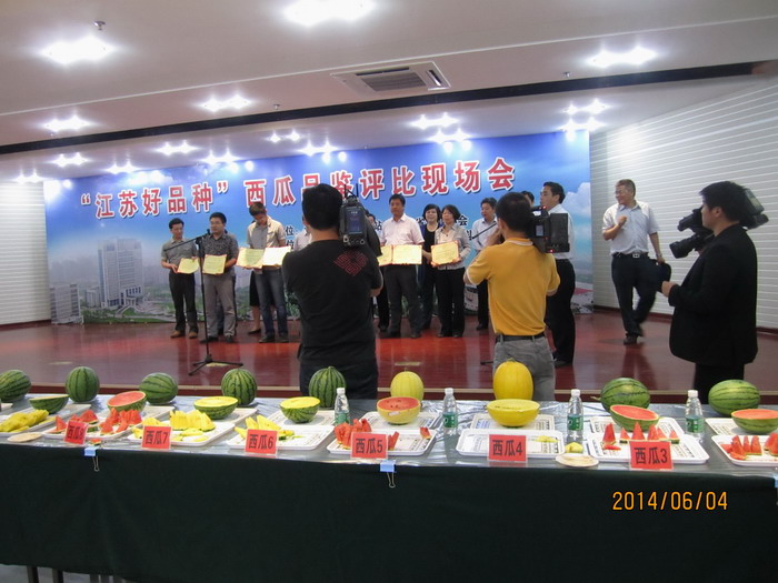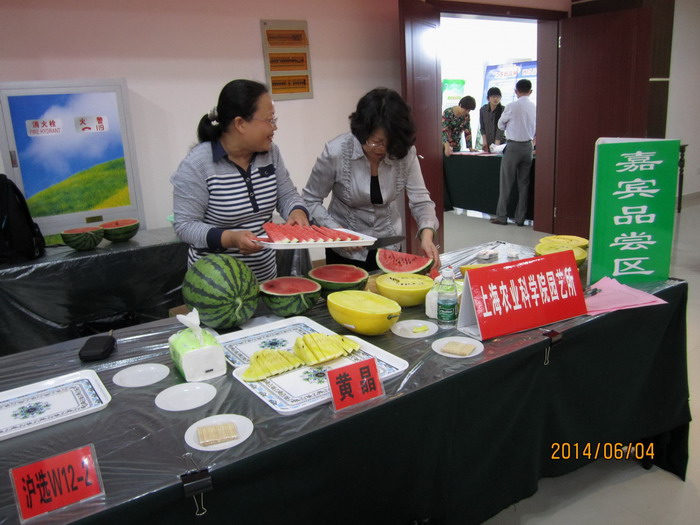 6月4-5日,我院园艺所所科技人员参加了由江苏省种子管理站及江苏省种业协会举办的“江苏好品种”西瓜品鉴评比活动,来自国内十多家育种科研院所及育种企业参加了本次活动,共有22个参展品种,由我院顾卫红研究员领衔育成的小果型特色西瓜新品种“黄晶”获得本次活动二等奖,早熟中果型设施栽培专用新组合“沪选12-2”获得参试品种三等奖。