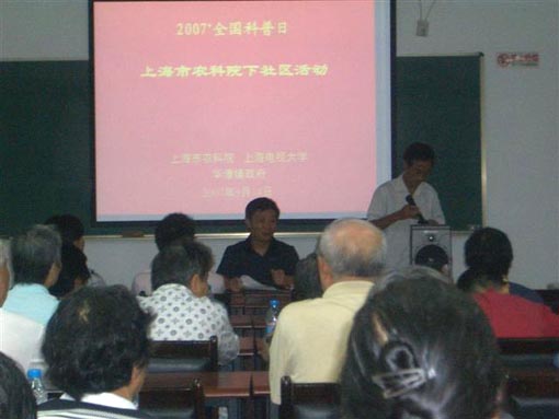 为了进一步贯彻实施《全民科学素质行动计划纲要》,宣传落实《中华人民共和国科学技术普及法》,2007年全国科普日期间,我院与上海电视大学、闵行区华漕镇政府等单位于9月14日在闵行区华漕国际社区活动中心联合举办了主题为“科学与健康生活”的科普下社区活动。