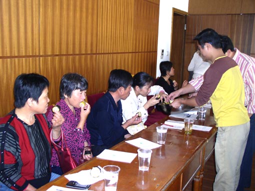 会上,玉米课题组发放了宣传资料,王义发研究员针对农户的需求向他们介绍了鲜食玉米的品种区别,并详细讲解了鲜食玉米高产高效和保优栽培关键技术。农民们踊跃提问,并亲自品尝了玉米课题组育成的糯玉米新品种鲜果穗。