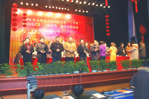 由市委宣传部等单位联合主办的“2008上海市科技、文化、卫生三下乡活动”于1月25日在奉贤区金汇镇文化活动中心拉开新一轮序幕。