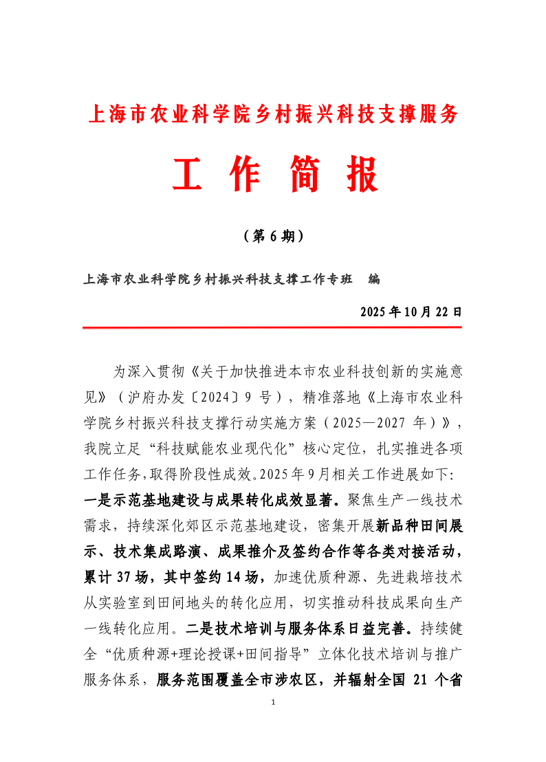 乡村振兴科技支撑服务工作简报(第6期)