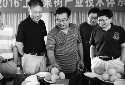 本报讯 日前,由上海市果业产业技术体系主办的“2016年度上海市设施蟠桃栽培及桃梨新品种现场品评会”在上海市蟠桃研究所举行。会议由桃梨优新品种(系)品评、设施栽培现场及采后贮藏气调库参观和室内学术交流会三部分组成。上海市农科院林果所所长、果业产业体系首席科学家叶正文研究员主持会议。市委农办、市农委副主任殷欧,市农科院党委书记、院长蔡友铭出席会议。