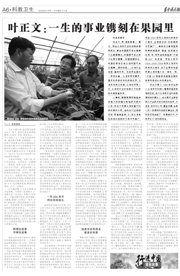 实验田洒遍了他辛勤的汗水,田埂上留下了他艰难的足迹,叶正文用自己的行为,诠释了“成果进农户、大地写论文”的科研宗旨。他用智慧和汗水浇灌着果树事业,将人生的价值镌刻在了果园里,更刻进了果农们的心坎里。
