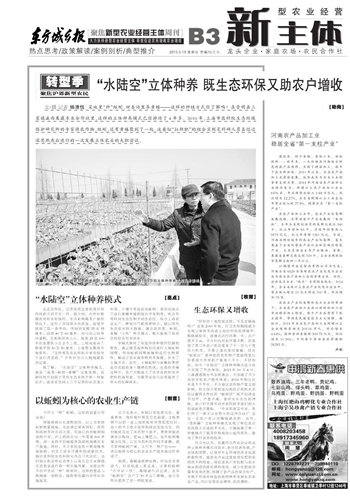 据了解,“水陆空”立体种养模式,就是“蔬菜-蚯蚓-黄鳝”立体发展,突破传统只局限于菜田生态系统中单一种植层次,追求在空间上三个层面即农田垄上种菜、土壤中养殖药用蚯蚓、菜田沟域水下进行黄鳝养殖的组合开发利用,充分利用时间生态位和空间生态位,结合上海农业生产、耕地与气候资源特点,辅以现代生态农业技术措施,建立农田菜、蚯蚓、黄鳝“立体”种养模式,极大提高了农田空间综合利用效率。