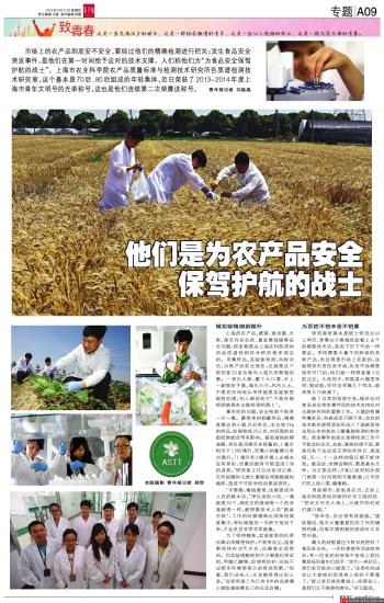 市场上的农产品到底安不安全,要经过他们的精确检测进行把关;发生食品安全突发事件,是他们在第一时间给予应对的技术支撑。人们称他们为“为食品安全保驾护航的战士”。上海市农业科学院农产品质量标准与检测技术研究所色质谱检测技术研究室,这个基本是70后、80后组成的年轻集体,近日荣获了2013-2014年度上海市青年文明号的光荣称号,这也是他们连续第二次荣膺该称号。青年报记者 刘晶晶