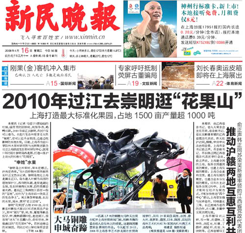 截至上月,崇明“花果园”已建成300亩桃园和200亩梨园;今年9月至明年3月,将栽培150亩猕猴桃园、100亩柑橘园和50亩制汁葡萄园。至2010年世博会,千亩果树陆续长成,整个园子果香四溢,开门迎客。