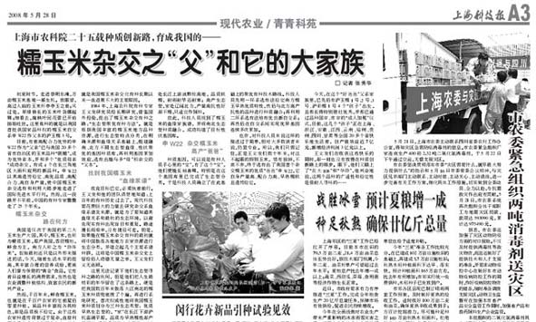 目前,有着高配合力优势的申w22作为“父亲”已与我国20多个省市自治区的玉米品种“联姻”,成为优势亲本,并和多个“优质母亲”成功杂交,育成4个在长三角地区大面积应用的新品种。申w22以其高遗传稳定、高优品质、高配合力、高自身产量,使中国糯玉米杂交选育和利用大踏步地走进了国际先进水平行列。然而,这一段路并不平坦,中国的育种专家整整走了25个年头。