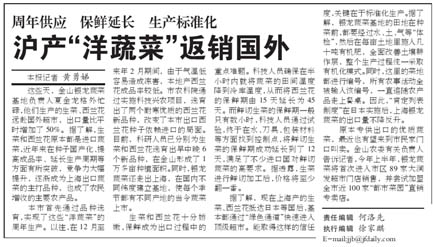 周年供应 保鲜延长 生产标准化 沪产“洋蔬菜”返销国外