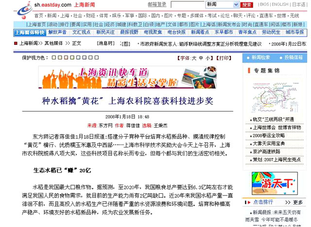 种水稻擒“黄花”上海农科院喜获科技进步奖