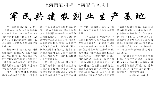 上海市农科院、上海警备区联手军民共建农副业生产基地