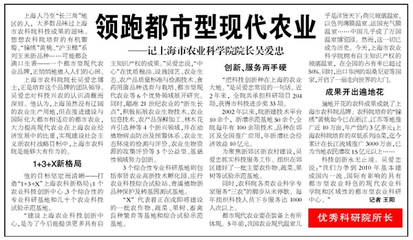 领跑都市型现代农业 记上海市农业科学院院长吴爱忠
