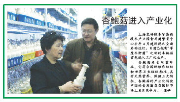 杏鲍菇进入产业化 来源:禾子 作者: 发布时间:2007-05-14 00:00:00 浏览次数: 次 【字体:小 大】 上海农科院奉贤高新技术产业园食用茵繁育中心去年4月建设现已全面启动运行。目前已把有“草原牛肝菌”之称的杏鲍菇首先进入工厂化生产。 杏鲍菇是食用菌珍品,它符合国际粮农组织和世界卫生组织标准,具有天然、营养、保健三大特征,杏鲍菇的产业化将使中国的食用菌在在国际市场上更具竞争力。 分享到: 【打印正文】