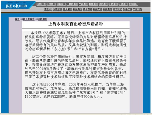 上海农科院育出哈密瓜新品种