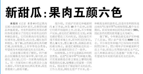 本报讯 (记者 黄勇娣)见过果肉五颜六色的甜瓜吗?前天,在奉贤的新品种基地里,市农科院研究员陈幼源向参观者展示了历经五年培育出的四种新品甜瓜,它们的果肉分别呈现出红绿双色、碧绿色、纯白色、橘红色四种颜色。据了解,这些新品甜瓜具有耐贮藏、抗病性强、上市早等综合优势,有望成为未来国内甜瓜的主打品种。