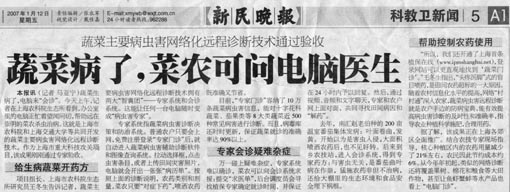项目组长、上海市农科院生态所研究员王冬生告诉记者,蔬菜主要病虫害网络化远程诊断技术拥有两大“智囊团”——专家系统和会诊系统。这能让任何一台电脑随时变成“病虫害专家”。