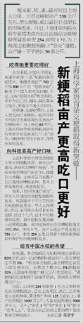 粳米黏、软、香,最对阿拉上海人口味。可普通粳稻亩产550公斤左右,增长缓慢,难以满足日益增长的市场需求。日前,上海市农科院水稻专家成功选育长江流域杂交晚粳稻恢复系申恢254、申恢1号,为上海周边的晚粳稻插上“杂交”翅膀,亩产量一下子增长50多公斤。