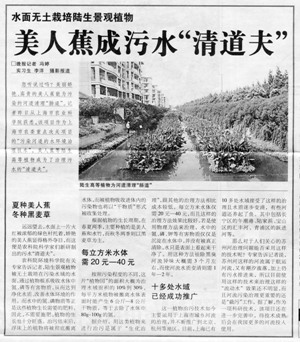 您听说过吗?美丽娇艳、高贵的美人蕉能为污染的河道清理“肠道”。记者昨日从上海市农业科学院获悉,该项目作为上海市农委重点攻关项目的“污染河道的水环境治理技术”,美人蕉等陆生高等植物成为了治理污水的“清道夫”。
