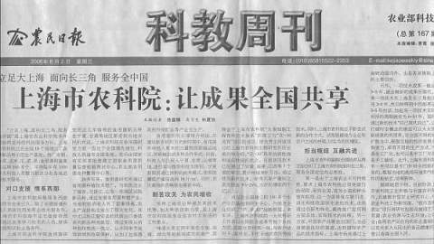 立足大上海 面向长三角 服务全中国 上海市农科院:让成果全国共享