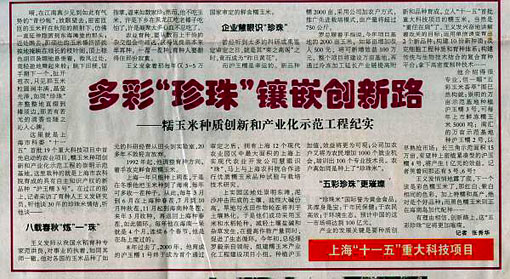 这里就是上海市科委“十一五”首批19个重大科技项目中首先启动的农业项目,糯玉米种项创新和产业化示范工程的崇明示范基地。这里栽种的就是上海市农科院育成的具有自主知识产权的新品种“沪王糯3号”。在过江的船上,记者采访了育种人王义发研究员:听他谈30年的珍珠米情结,听他谈——