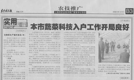 为贯彻落实中央1号文件,确保上海郊区蔬菜生产安全,加快设施蔬菜发展,实现蔬菜产业可持续发展,以及农业增效、农民增收的目标,于2006年年初启动实施蔬菜生产科技入户示范工程,目前各项工作进展顺利。
