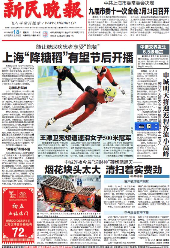 本报讯(记者马亚宁)喜庆年节,少不了“吃”,糖尿病人却不得不“勒紧裤腰带”,抵制美食诱惑。新春佳节,上海农科院传来好消息,适用于糖尿病人的低能量低糖吸收水稻新品种选育及应用通过上海市科委验收。能让糖尿病患者享受“饱餐”的“降糖稻1号”,有望于虎年春天在上海郊区开始播种。