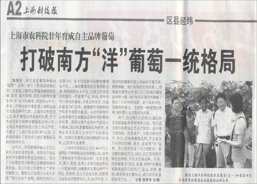 上海市农科院自上世纪80年代上海郊区开展种植业结构调整以来,培育了多种经济作物的新品种,尤其在桃子、梨子、枇杷、各类小水果方面选育出一大批新种源。而葡萄的主要品种产于欧亚、欧美带,是北方适栽水果,选育南方适栽难度很大。但20多年来,上海农科院葡萄科技人员始终不离不弃,默默奉献,他们如同走在独木上,艰难地向着育同中国人自己的南方葡萄品种努力着。他们先后从国内外搜集了数以千计的种质资源,进行栽种评价,观察性状表达,为获得一株理想的单株,有时要付出无数次的失败。