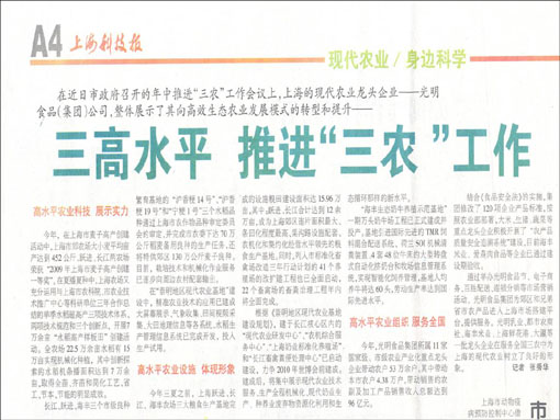 今年,在上海市麦子高产创建活动中,上海市郊农场大小麦平均亩产达到452公斤,跃进、长江荣获“2009年上海市麦子高产创建一等奖”。在夏播夏种中,上海农场又充分运用与上海市农科院、市农业技术推广中心等科研单位三年合作总结的单季水稻超高产三项技术体系、两项技术规范和三个创新点,开展7万余亩“水稻高产样板田”创建活动。全农场22.5万余亩水稻有15万亩实现机械化种植,其中创新探索的水稻机条播面积达到7万余亩,取得全苗、齐苗和简化工艺、省工、节本、节能的明显成效。
