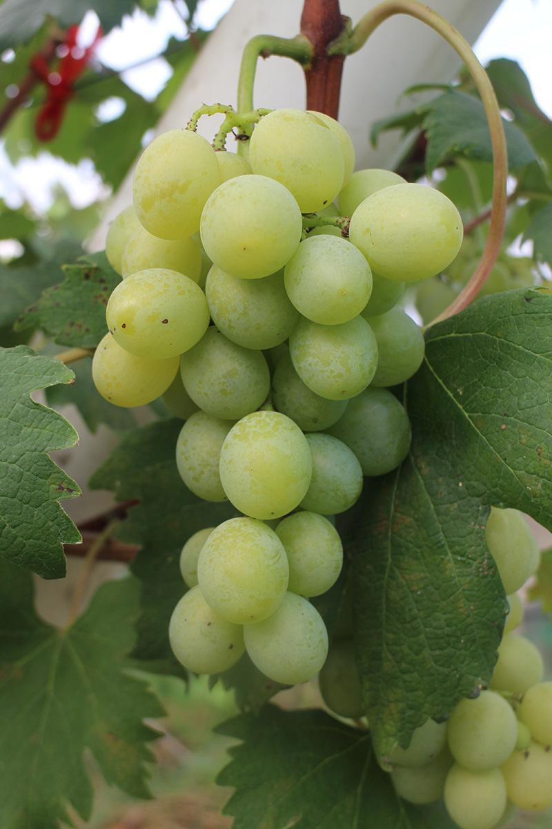 “申玉”品种,则是中晚熟品种,果穗中小,果粒大,呈长椭圆型,而且颜色为少见的黄绿色,提升了大粒葡萄在颜色上的丰富性。