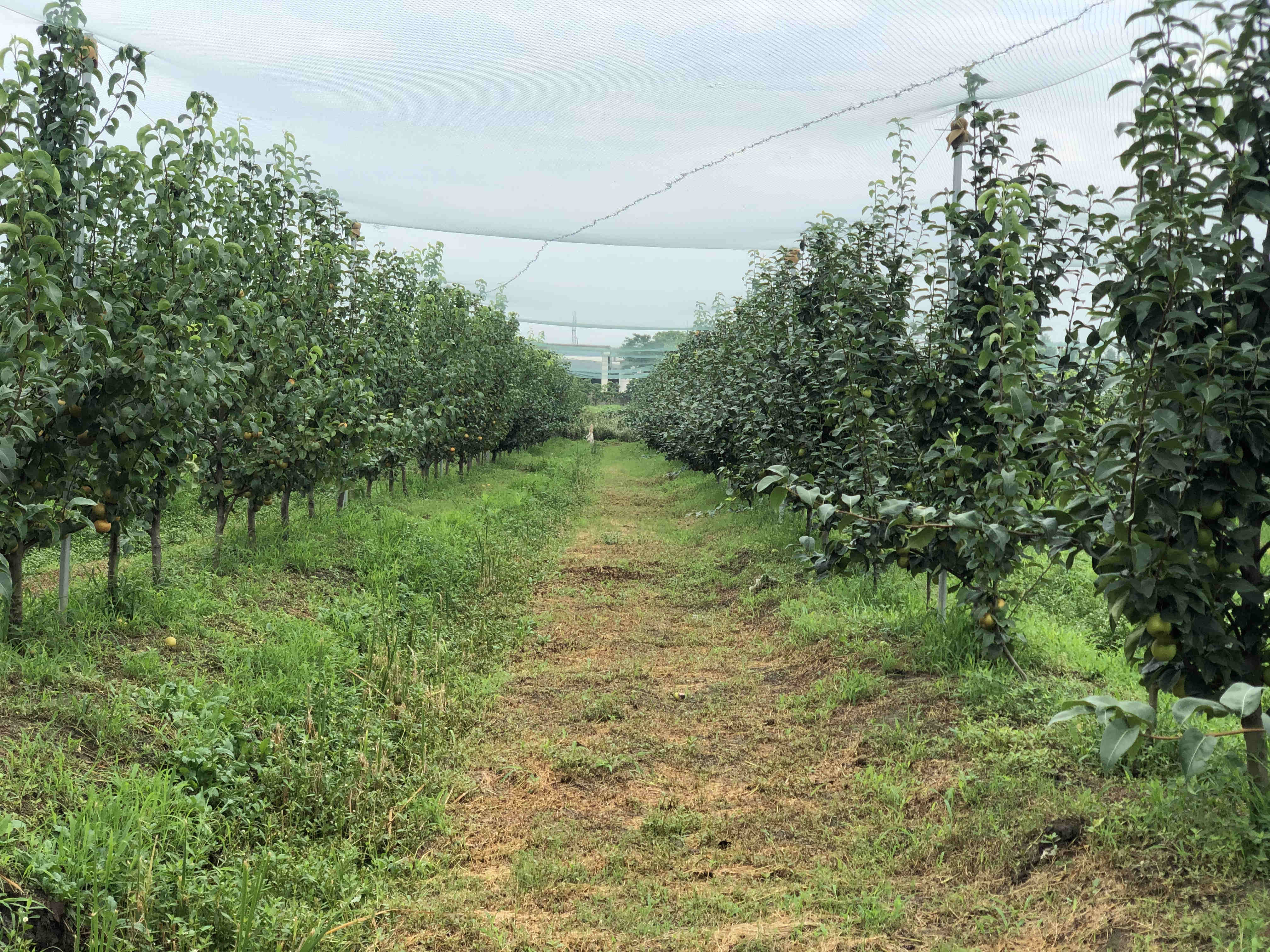 而新栽种的“沪晶梨18号”,按照专家团队的指导,管理难度并不高。康然合作社作为上海市农科院乡村振兴科技支撑行动引领性示范基地,专家团队会全程参与生产并提供指导培训。“首先,合作社在最初两年以养地为主,撒施腐熟优质有机肥10吨/亩以上,深翻改土,地面生草,适时刈割,保肥保墒,提升土壤地力。同时,采用 ‘宽行密植’的栽种模式,高质量建园,便于机械化作业。此外在树形上,采用单主干树形整形,简化树形结构,便于管理,改善通风透光,病虫害也容易控制……”骆军说,通过这样的栽培模式,梨园生产的梨品质更高,绿色健康,在此模式下,“沪晶梨18号”树体管理技术比常规栽培“早生新水”甚至“翠冠”更易于掌握。