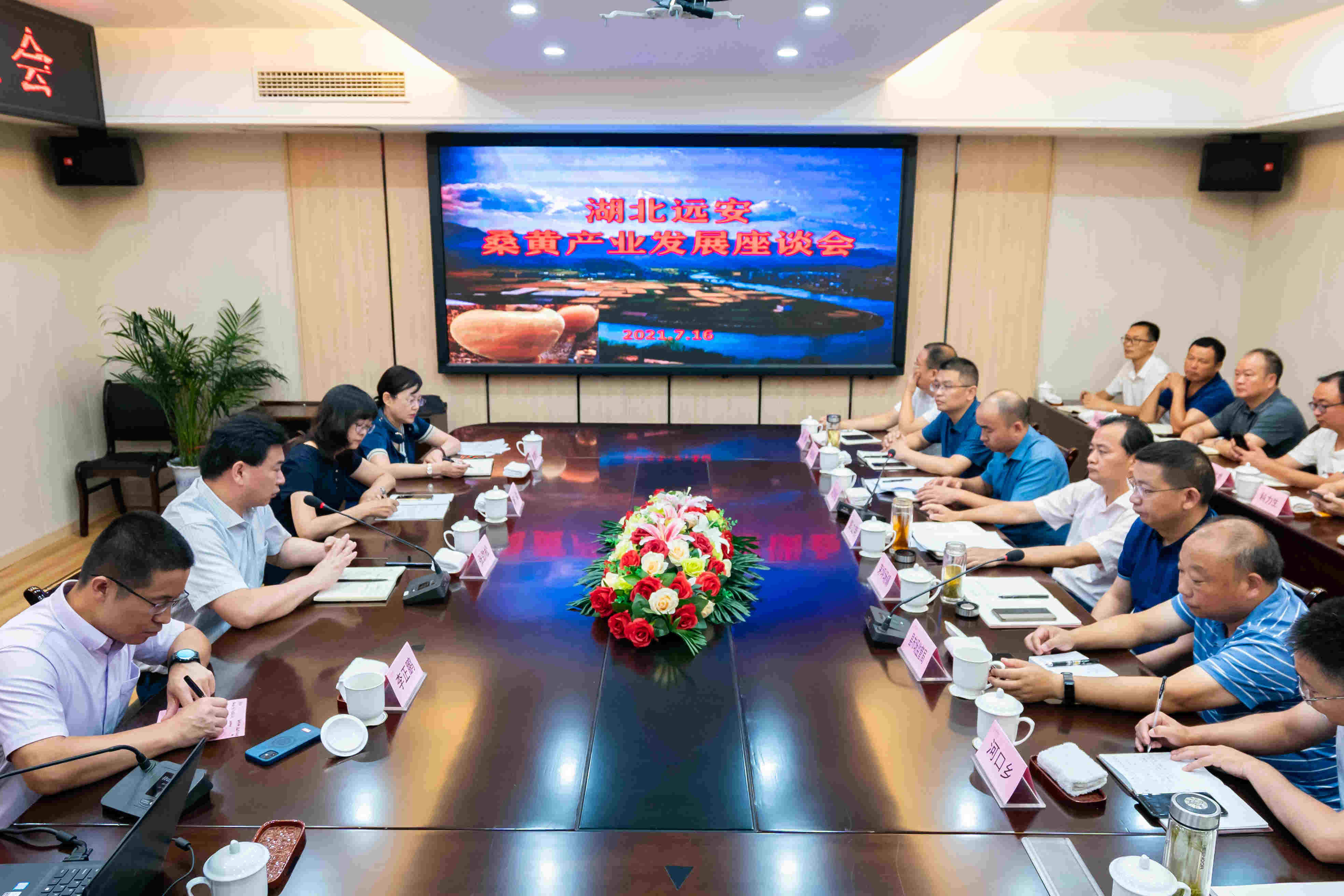 湖北省宜昌市远安县生态环境优良,林木茂盛,有着丰富的野生桑黄资源,已相继在桑树、黄栌、槭树、紫荆、黄连木、忍冬树上发现野生桑黄;同时,远安县是嫘祖故里,有着悠久的种桑养蚕历史,具备了发展桑黄产业的文化、生态、资源条件。为推进当地桑黄产业的发展,远安县政府向具备雄厚研究实力的上海市农业科学院食用菌研究所寻求技术支撑。7月16日,上海农科院食用菌所张劲松所长一行应邀参加了远安县政府举办的桑黄产业发展推进会,并与远安县人民政府签订了嫘祖桑黄产业发展战略合作协议,同时双方联合在当地食用菌龙头企业——湖北森源生态科技股份有限公司成立嫘祖桑黄研究院,将在桑黄新品种选育、种源收集、栽培模式探索、品牌商标打造、桑黄中药饮片规范制定等多方面深入合作,实现一二三产融合发展,延长当地桑黄等食用菌产业链。