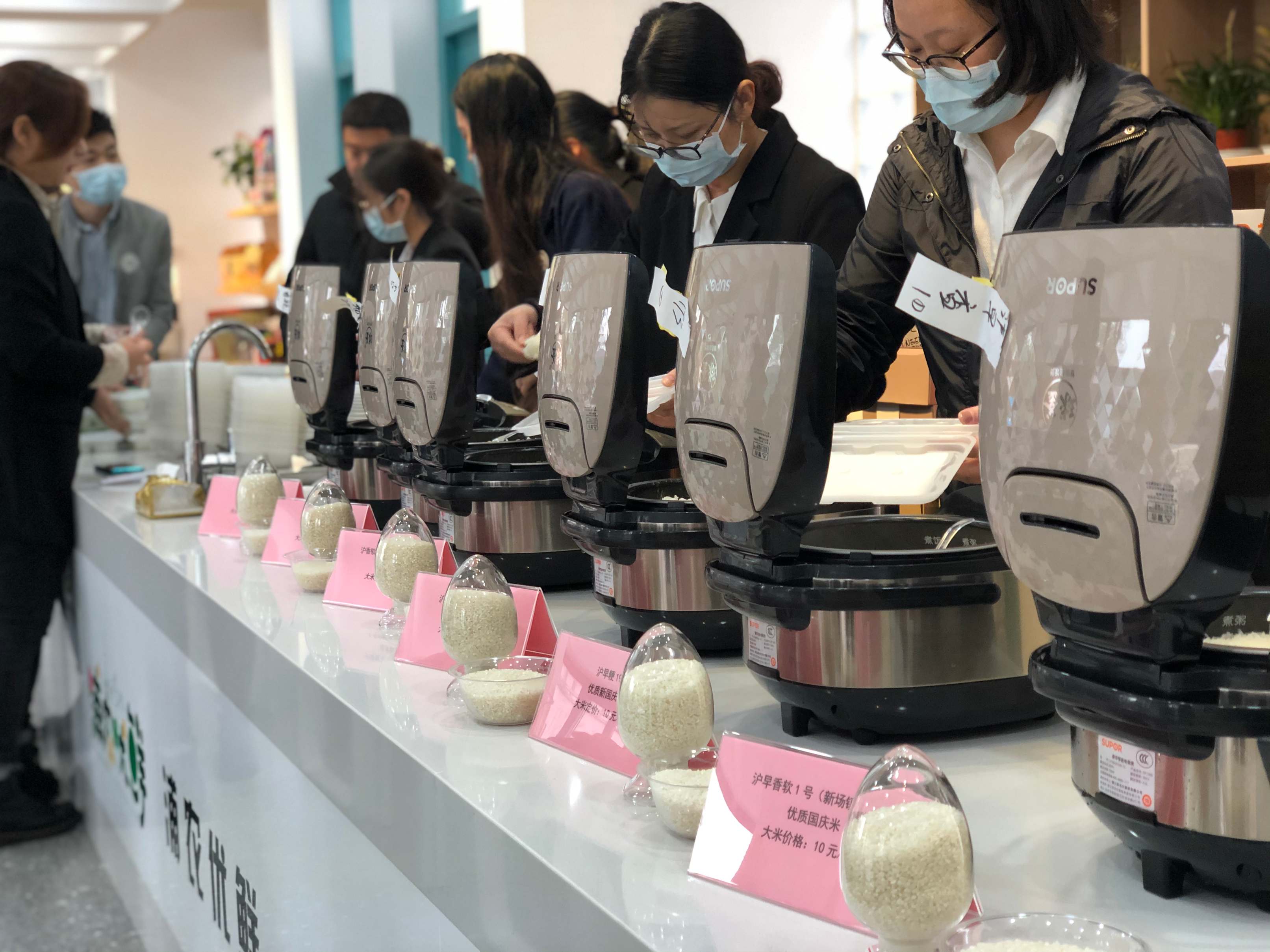 此外,“沪早香软 1 号”“沪早粳 193”“沪香软 450”“沪香粳 201”“沪稻香软 34”“沪软 1212”等优质稻米在现场品鉴,6个品种稻米经电饭煲煮熟后被隐去品种名称,以编号的方式统一盛放在容器中,供现场嘉宾品鉴并投票。最终,“沪香软 450”“沪软1212”“沪早粳193”以较高票数位列前三。