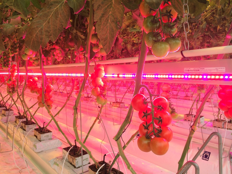 另一端,上海市农科院智慧农业研究中心首席科学家丁小涛研究员带领植物工厂团队正运行智能温室于“城市农场”。阳光透过玻璃洒下,满足温室内作物的光照需求;当自然光照不足时,室内LED灯和高压钠灯则进行自动补光;温室环境控制系统可根据作物需求,实时调节光照、温湿度和灌溉营养液,每平方米年产量番茄可达50公斤、黄瓜60公斤。