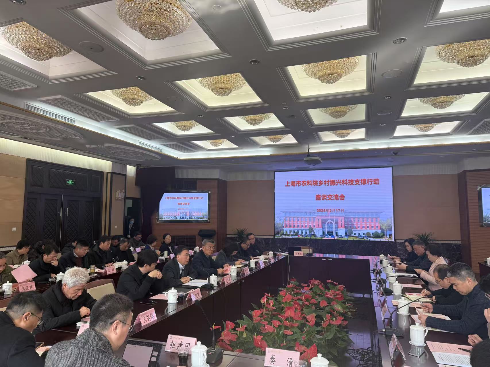 为深入贯彻落实《上海市人民政府办公厅关于加快推进本市农业科技创新的实施意见》,促进科技创新与产业创新的深度融合,发挥龙头带动和示范引领作用,2月17日上午,院乡村振兴科技支撑行动座谈交流会在奉浦院区举行,会议邀请光明集团、清美集团等17家上海市农业领域龙头(重点)企业负责同志来院共商科技赋能产业振兴、院企共筑农业高质量发展新生态相关事宜。院党委书记、院长蔡友铭及其他党政班子成员出席。会议由院党委委员、副院长赵志辉主持。