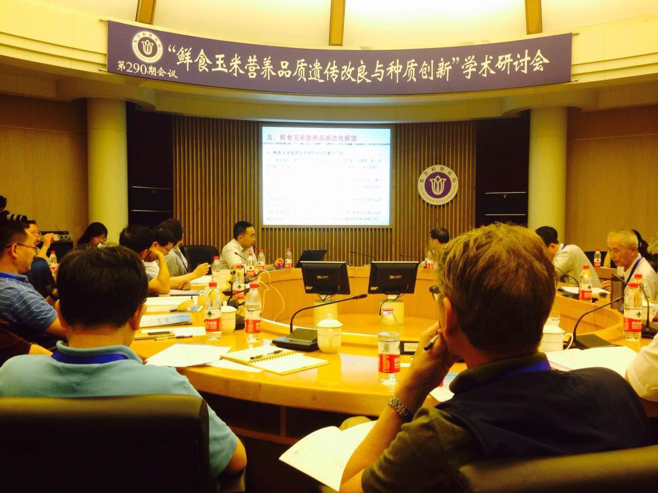 报告会首先由我院作物所研究员郑洪建作了题为《鲜食玉米基因资源与营养品质改良》的主题报告,来自各地高校和研究院所的8位专家学者分别从“西南地区糯玉米种质资源与创新利用”、“优质蛋白玉米形成机制与育种新思路”、“玉米营养品质优良基因挖掘与分子育种”、“隐性饥饿与叶酸生物强化”、“甜玉米营养品质评价与品种创制”、“鲜食糯玉米功能性主食化探讨”、“鲜食玉米品质对环境的响应与调控”、“鲜食糯玉米保鲜加工与产品开发”等方面做了专题报告,介绍了各自研究领域的最新进展和现状,并与现场的嘉宾进行了热烈的圆桌讨论。中国工程院的玉米遗传育种学家戴景瑞、荣廷昭两位院士分别对各位专家学者的报告内容提出宝贵的看法和建议。戴景瑞院士认为,开展鲜食玉米营养品质遗传改良对我国经济结构调整很重要,本次会议为我国鲜食玉米产业发展发挥了冲锋号作用;建议在甜玉米方面,应该大力引进欧洲和美国的甜玉米资源,进行创新利用;在糯玉米方面,加强我国西南丰富地方种质资源的改良利用。荣廷昭院士认为,对上海特大城市而言,鲜食玉米的研发和生产尤为重要;建议对鲜食玉米的研发和生产给予更高的支持,使上海成为鲜食玉米产业的中坚力量;建议加强国内外资源的收集、交流,建立有关同行的合作创新联盟。