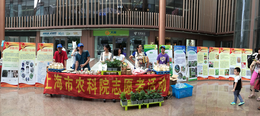 本次活动与由共青团上海市委员会、上海市慈善基金会共同主办的“我们的年轻范-‘为孩子•留下爱’上海青年全城劝募行动”同时进行。活动通过展板、宣传手册、现场解答等形式宣传农业科普常识,向市民普及健康饮食和健康生活的理念,在科普宣传的同时,开展我院特色农产品(瓶栽杏鲍菇、阳台蔬菜、大米、爆米花等)义卖活动 ,筹集爱心基金,在奉献爱心的同时展现了我院青年的时代风采。