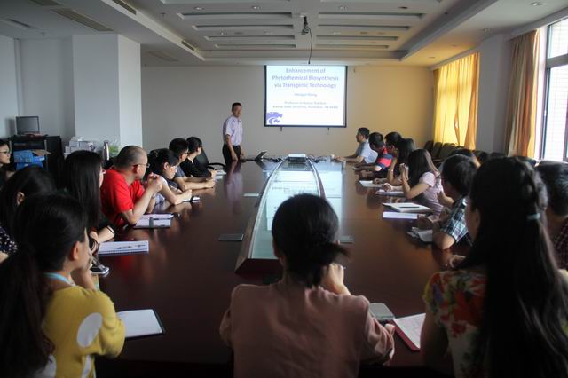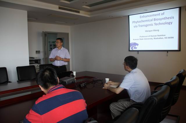6月20日,应我院质标所邀请,美国堪萨斯州立大学的王伟群教授在质标所会议室做了题为enhancement of phytochemical biosynthesis via transgenic technology的学术报告,我院质标所赵志辉、生物所唐雪明研究员参加了学术交流。