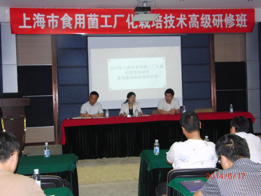 为进一步提高上海市食用菌生产技术人员的生产操作能力和技术水平,同时也为更好的服务上海的食用菌企业,加快整合上海从事食用菌科学研究和生产之间的资源共享,由上海市人力资源和社会保障局、上海市农业委员会、上海食用菌高效生产和加工产业技术创新战略联盟组织,上海市农业科学院承办的“上海市食用菌工厂化生产技术高级研修班”和“上海食用菌高效生产和加工产业技术创新战略联盟培训班”于2014年6月17-19日在奉贤区南桥新城聚润宾馆举行。