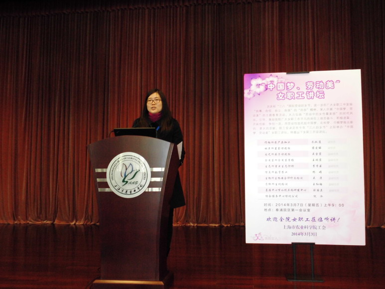 3月7日,院工会在奉浦院区第一会议室举办“中国梦、劳动美”女职工讲坛。经各基层单位党组织、工会的推荐,作物所孔秋莲研究员、林果所蒋爱丽研究员、园艺所吴雪霞副研究员、食用菌所王瑞霞副研究员、生态所田志惠、信息所杨娟副研究员、生物所吴潇副研究员、质标所王红梅副研究员、基因中心刘国兰副研究员、服务中心倪泓等10位女职工代表分别结合自己的思考和实践,以“中国梦、巾帼梦、农科美、劳动美”、“劳动编织未来、奋斗成就梦想”、“追逐我的绿色农科梦”、“立足岗位展风采”、“我的时间都去哪儿了”等题目为广大女职工深入诠释“中国梦、劳动美”这一主题的丰富内涵,与大家一起分享了她们的努力、拼搏和梦想,演讲生动,图文并茂,内容充实而贴近实际,激起了在场女职工的强烈共鸣。院工会副主席(主持)马晓林主持了本次讲坛,全院70余名女职工参加了讲坛。