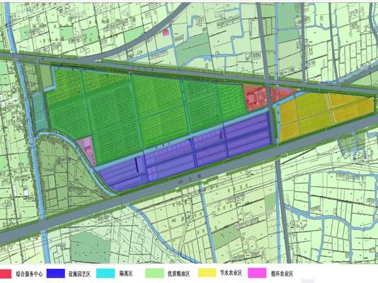 (3)设施园艺区。占地约450亩,以建成果树和蔬菜资源圃,名、优、特、奇蔬菜、果树、花卉等各种苗木繁育及生产示范区、办公楼等。该区有连片的联栋大棚、管棚群与1公顷的智能温室;有别墅式的果树管理楼和集智能温室控制、蔬菜处理、实验、办公、科普展示于一体的蔬菜管理楼,通过智能空间的生产管理方式,建设规模连片,林果蔬菜结合,灌排设施完善配套的周年化生产的多品种优质蔬菜生产区,为城市供应真正的绿色蔬菜和水果。