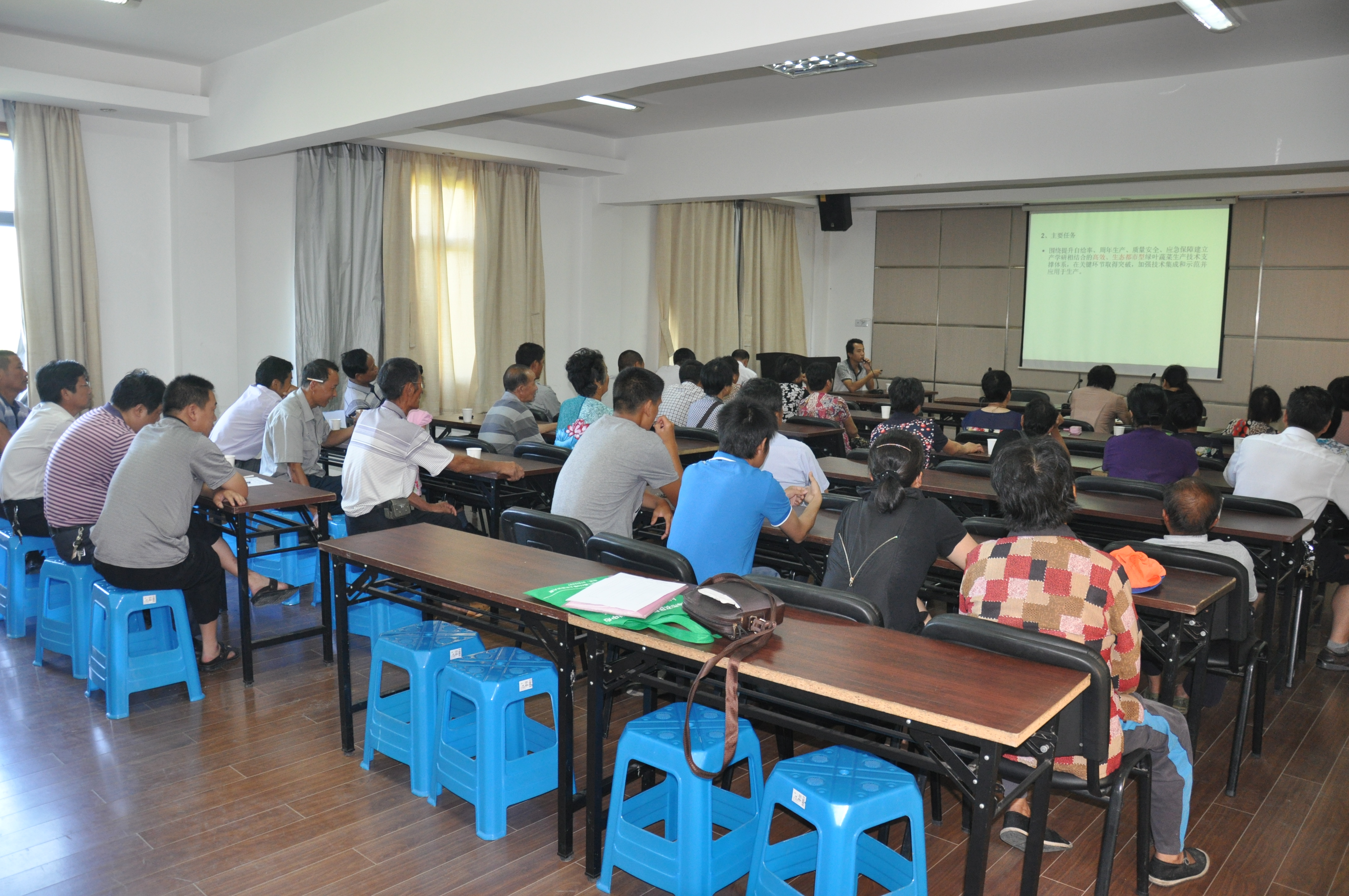 7月19日,庄行综合试验站积极开展科技兴农服务活动,发挥试验示范基地优势,配合奉贤区庄行镇举办“田头学校”培训班,40余名农民朋友参加了培训。 在试验站党政班子的大力支持下,站办公室十分重视此次培训,安排绿叶菜技术体系庄行试验站站长张兆辉做了关于“鸡毛菜越夏栽培安全生产与机械化作业技术”培训报告,主要从几个方面进行了培训:⑴简单介绍了上海市绿叶菜产业技术体系的概况,让农民朋友了解政府对绿叶菜生产的重视,以及体系的进展和取得的成效;⑵针对越夏栽培的安全生产技术从品种选择、病虫害防治、肥水一体化技术等方面做了详细的讲解;⑶详细介绍了鸡毛菜全程机械化作业技术,并现场演示了绿叶菜收割作业。 通过此次培训,加强了我站科技兴农服务的能力,使我站青年科技人员业务水平得到了提高,锻炼了青年科技人员服务三农的能力。