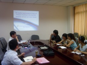 8月5日,韩国食品研究院资深研究员Park Hyung Woo 和Kim Sang Hee应邀在作物林果所为科技人员和在读研究生分别作了题为“MA Packaging for Fresh Produce”和“Microorganism of fruits and vegetables during storage”的学术报告,并就韩国在食品工业发展及保鲜新技术等方面进行阐述和交流。Park Hyung Woo 和Kim Sang Hee教授的学术报告为作物林果所主持的上海市国际合作项目“食用农产品加工安全体系关键技术研究”注入了新的研究思路,同时增进了双方在食品安全、保鲜加工新技术延展和应用等领域的交流与学习,为推动双方的深入合作和技术交流打下了基础。
